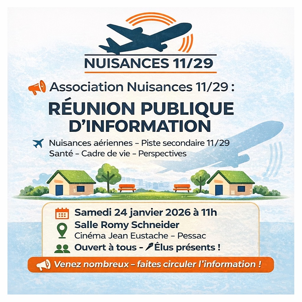 Notre association se bat avec détermination pour défendre les habitants et usagers face aux nuisances causées par les survols à basse altitude liés à l’utilisation de la piste secondaire de l’aéroport de Bordeaux-Mérignac.