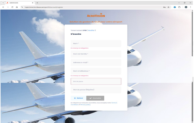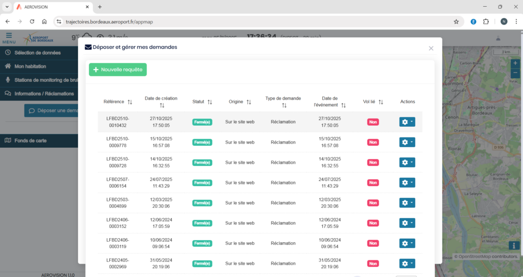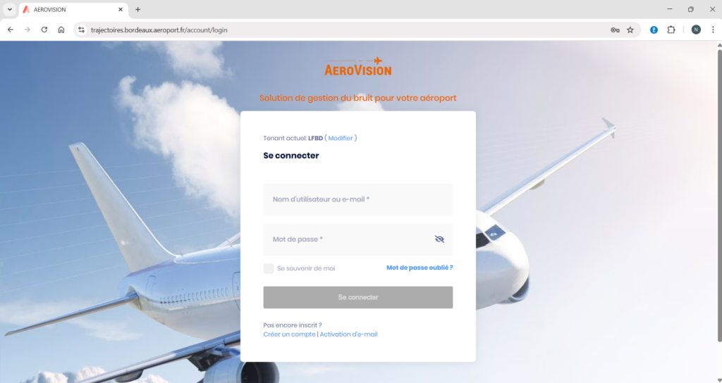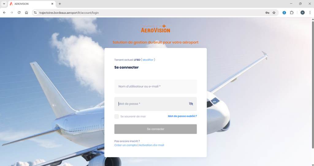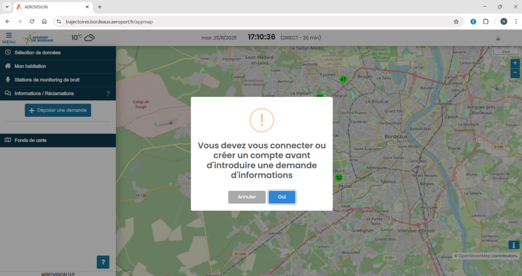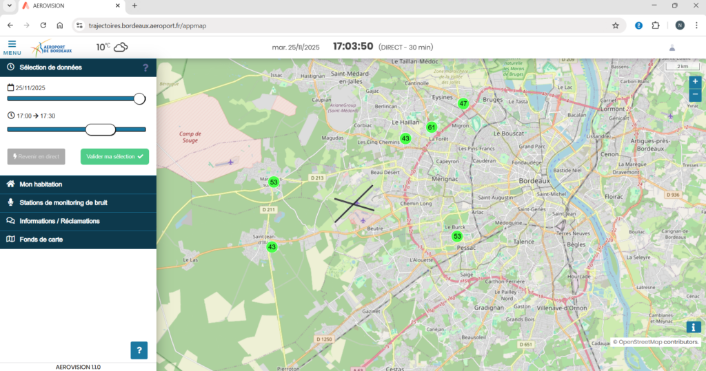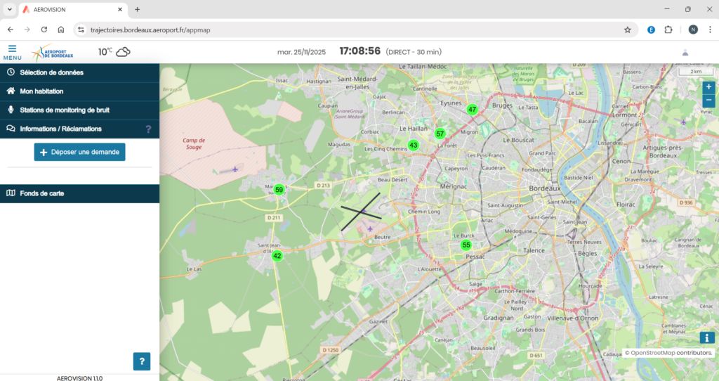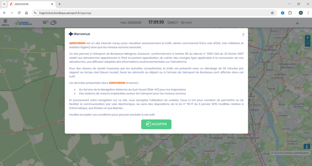 1 – Se rendre sur le site aerovision https://trajectoires.bordeaux.aeroport.fr/appmap