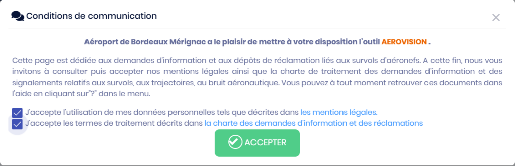 Cocher les 2 cases à cocher puis cliquer sur le bouton ACCEPTER