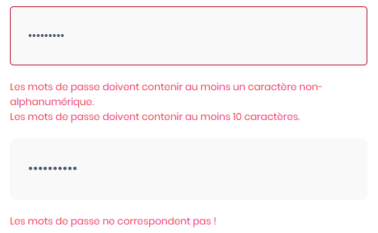 Les erreurs fréquentes possibles sont une adresse email mal saisie  et/ou un mot de passe mal répété.